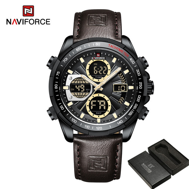 NAVIFORCE NF9197 Men's Dual Display Watch – Sport Analog Digital Leather Strap Wristwatch