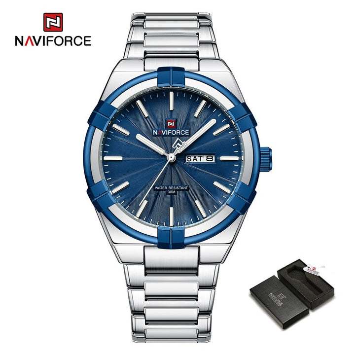 Upgrade your look with the NAVIFORCE NF9218 men's watch, designed for men who prefer a perfect combination of luxury style, sporty design, and business elegance. This stainless steel men’s wristwatch features a modern and stylish design that complements both professional outfits and casual fashion.