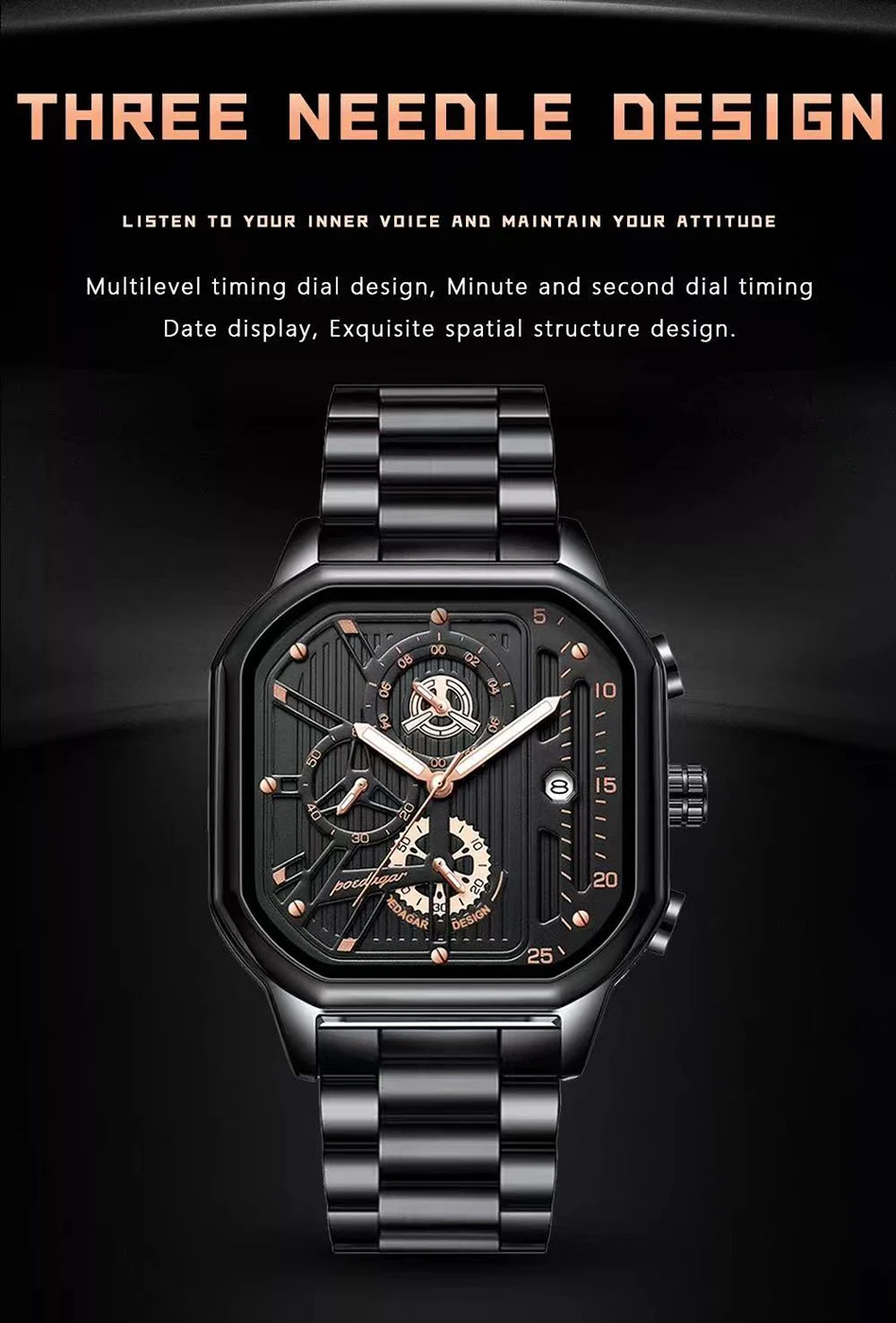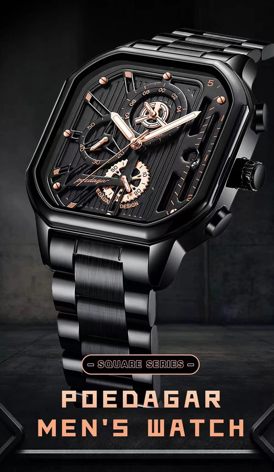 - Feature: STOP WATCH,Shock Resistant,Luminous,Auto Date,Chronograph,Complete Calendar,Diver,Water Resistant,swim,luminous hands