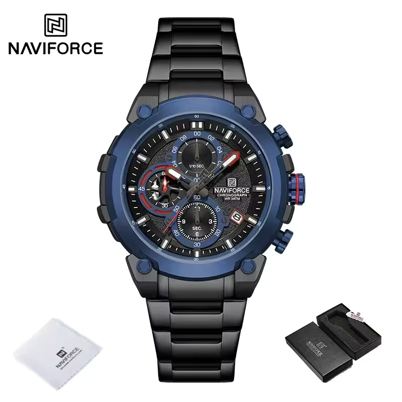 Upgrade your style with the NAVIFORCE NF8071 men's watch, designed for men who prefer a perfect combination of sport performance and modern fashion. This chronograph stainless steel wristwatch features a bold and stylish design suitable for both casual outfits and business wear.