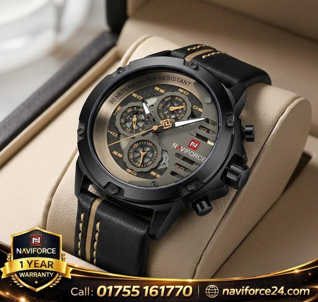 Upgrade your style with the NAVIFORCE NF9110 men’s watch, a perfect combination of luxury fashion, business elegance, and sporty design. This fashion men watch is built with a durable stainless steel case, premium leather strap, and strong Hardlex dial window, ensuring durability and a stylish appearance.