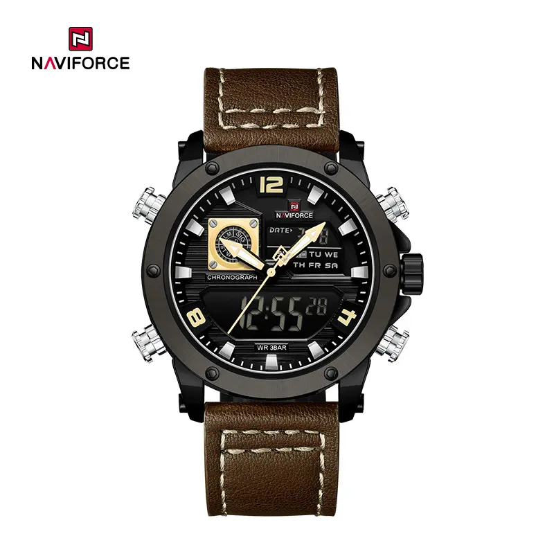 NAVIFORCE NF9236 Men's Dual Display Watch – Sport Chronograph Leather Strap Wristwatch