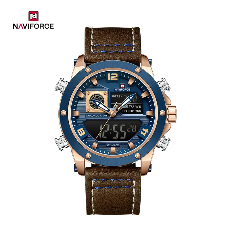 NAVIFORCE NF9236 Men's Dual Display Watch – Sport Chronograph Leather Strap Wristwatch