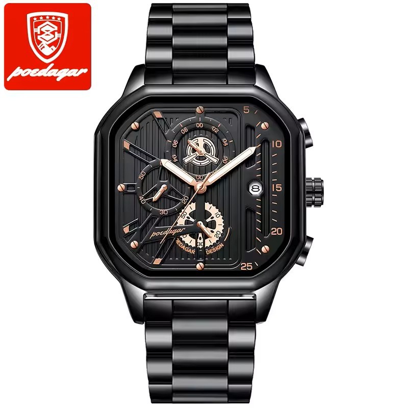 POEDAGAR 628 (100% ORIGINAL) Men’s Watch – Square Dial Stainless Steel Luxury Watch in Bangladesh